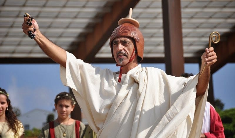 At the festival, with the men decked in flowers, and the women wearing normally forbidden gay costumes, five days of farces and mimes were enacted – ithyphallic,[5] and including nudity when called for[6] – followed by a sixth day of the hunting of goats and hares.[7]