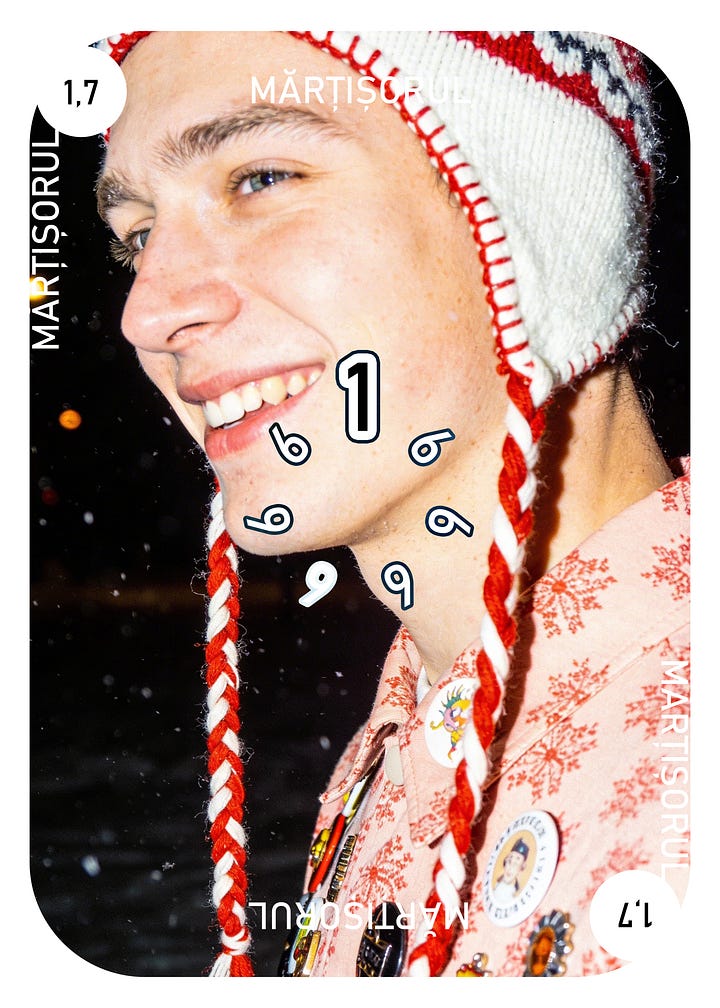 I learned that it is a calendar. 365 of the thinnest threads, half red, half white, representing summer and winter days. These two bundles of threads are then weaved together, representing the whole year. At the end of the 19th century this magic string was then knotted in a bow and attached to a silver or even gold coin and was worn until other particular spring feast later in the season. And then it got hanged on a blossoming branch. It was said to be given to both girls and boys by their parents. Somewhere along the way it morphed into the gendered version we have today1. It was believed that the ones who wear it will not be burned by the sun during summer, stay in good health all year, will be lovable and loving, rich and lucky, all the good stuff. Good amulet to be protected by2.