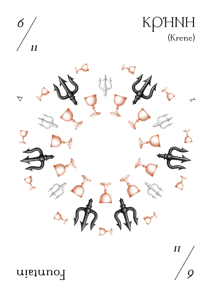 In Coliere V1 is ΚΡΉΝΗ (Fountain), E(6,11) [x . x . x . x . x . x], gathering the waters inside, receiving life.
